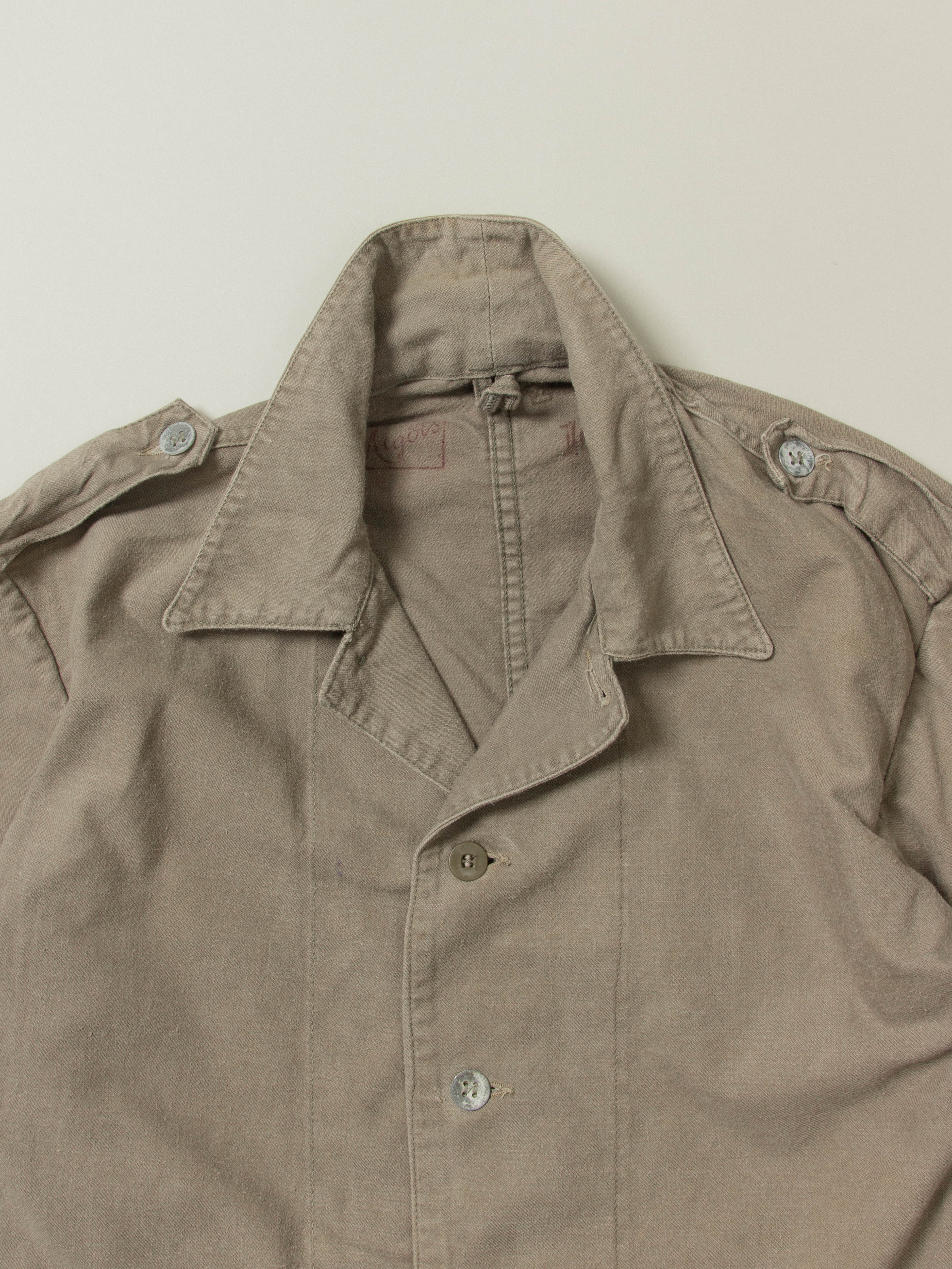 The jacket was part of a 2 piece set used by soldiers working in camp barracks.