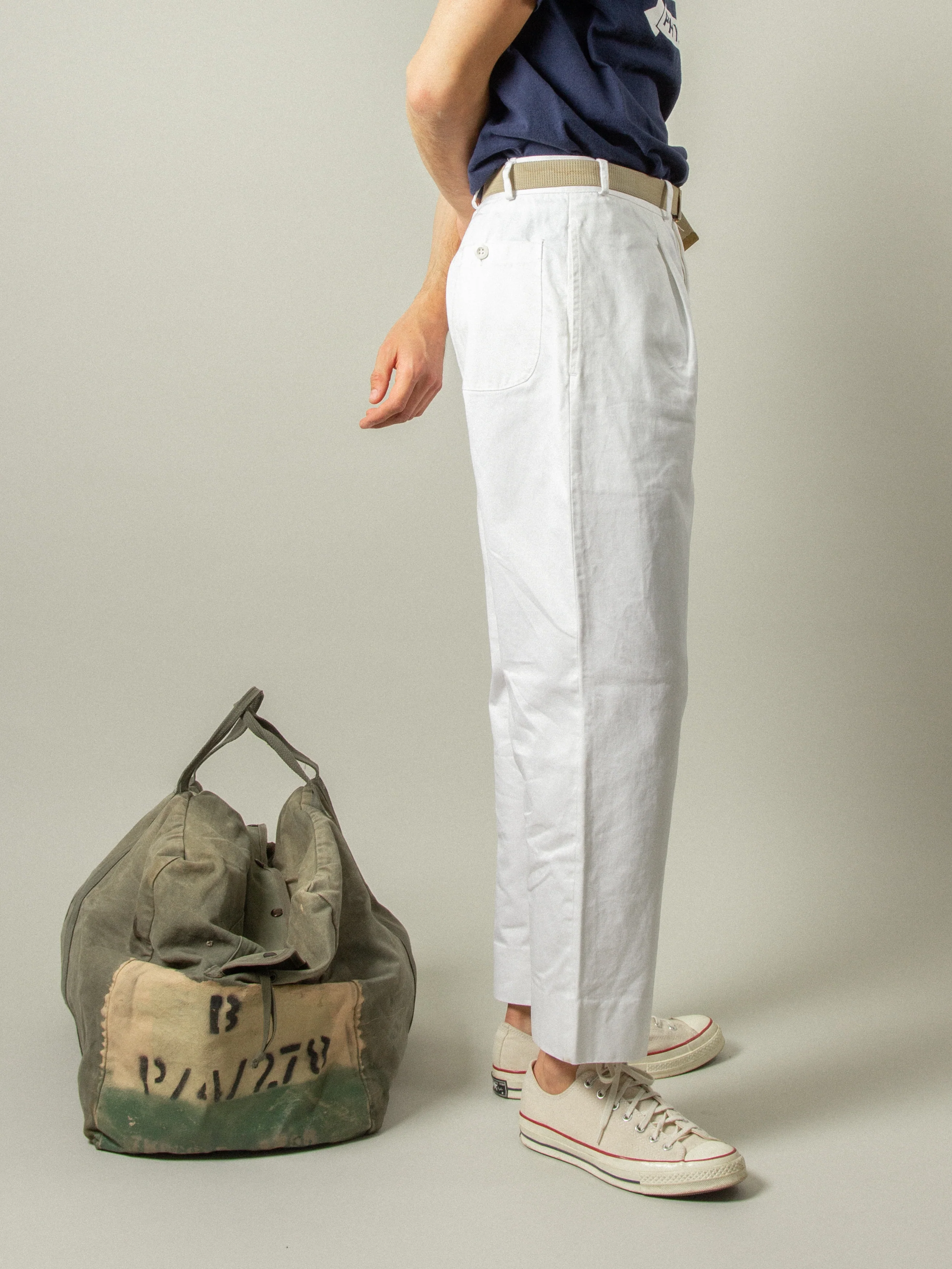 Item: Vintage New Old Stock Italian Navy White Cotton Pants